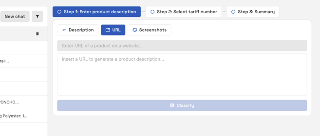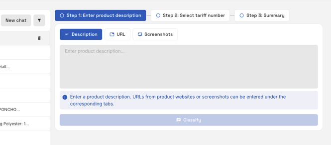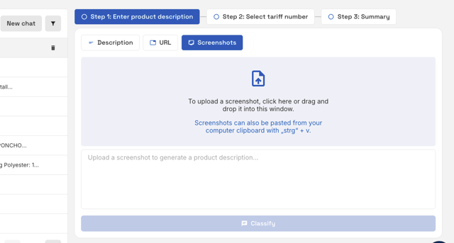 An existing product description can be directly copied into the text field or created manually at the time of entry. To ensure high accuracy from the AI, it's important to include all relevant details.